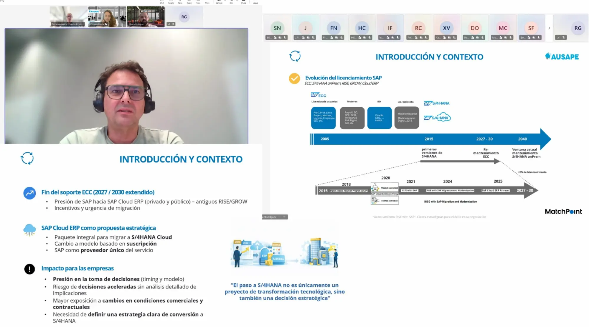 Hoy hemos tenido el placer de llevar a cabo el webinar: “Licenciamiento RISE with SAP: claves estratégicas para el éxito en la negociación”, organizado por AUSAPE y el GT de Licenciamiento.